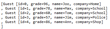 다음과 같이 ArrayList에 담긴 Guest가 출력이 되는 모습을 볼수 있다.