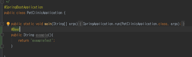 SpringBootApplication 안에 @Bean 어노테이션이 선언된 메소드 하나를 생성ㅎ앴다.