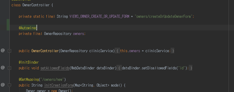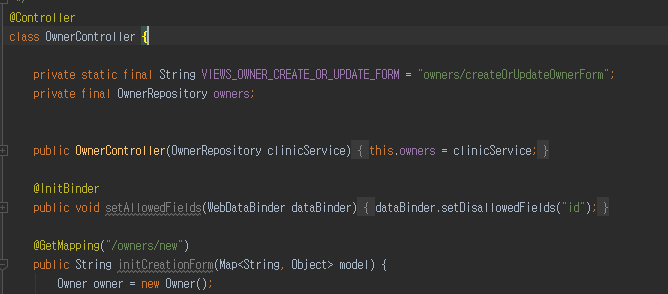 컨트롤러는 결국 OwerRepository를 직접 생성해서 관리 하지 않고 바깥쪽에서 받아 다루게 된다.
