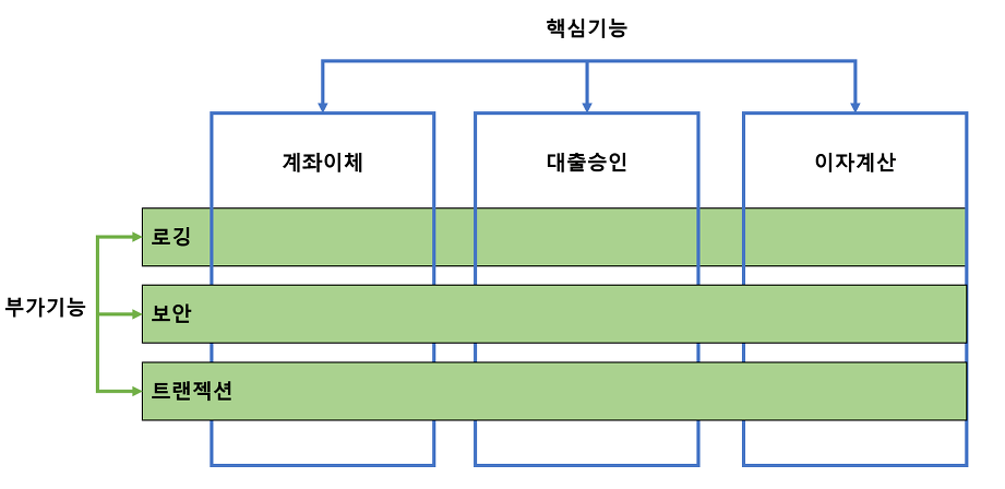 은행의 기능중에 계좌이체 대출승인 이자계산등이 있을 수 있다.