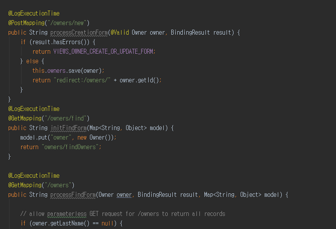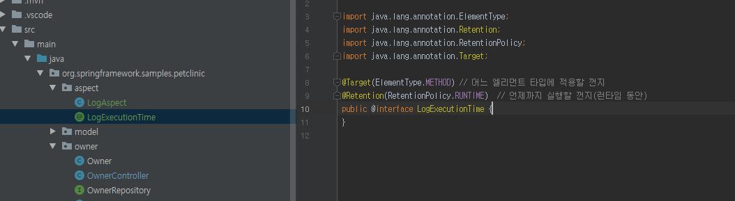 어노테이션을 생성한 후에 다음과 같이 기능에 어노테이션을 작성해주었다.