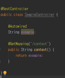 example Bean객체를 가져오고 다른 어떠한 할당이나 인스턴스를 불러와 사용하는 것 없이 바로 사용되었다.