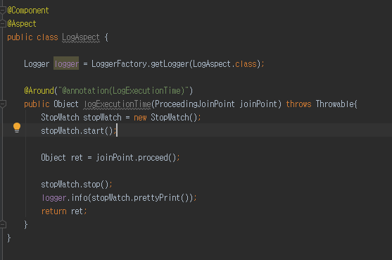 어떤 주요기능을 요청했을때, 얼마나 시간이 걸렸는지 로그에 찍는 어노테이션을 생성하고자 한다.