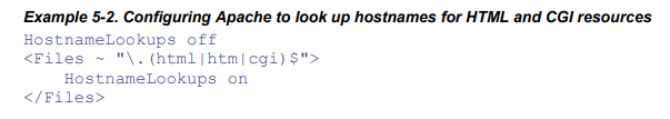 웹 서버는 연결된 클라이언트를 식별하기 위해서 역방향 DNS를 사용해서 클라이언트의 IP 주소를 호스트 명으로 변환하여 사용한다. 이것은 꽤 많은 시간이 걸려 트랙잭션을 느려지게 할 여지가 있다.